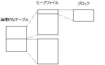 テーブルは、ブロックという8092バイトの領域が0~131072(1GB)個以下集まったものです。テーブル作成すると0Byteのヒープファイルというのが作成されます。