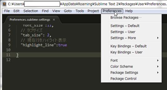 このエラーを回避するには、「Preferences」 - 「Package Settings」 - 「Package Control」 - 「Settings - Default」を選択します。
