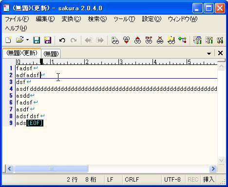 sakuraエディタで、最終行まで反転するには、ctrl + shift + endを押します。以下の図は2行目にカーソルがあります。