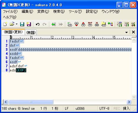 sakuraエディタで、先頭行まで反転するには、ctrl + shift + homeを押します。以下の図は2行目にカーソルがあります。