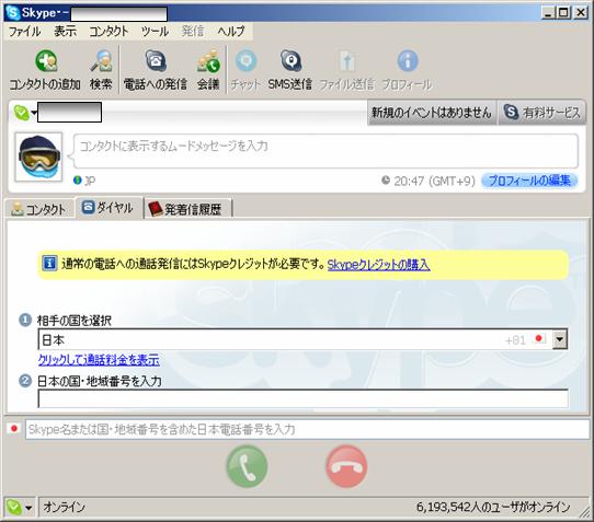 スカイプクレジット を購入します。スカイプクレジットは1500円から購入でき、およそ10時間の通話ができます。