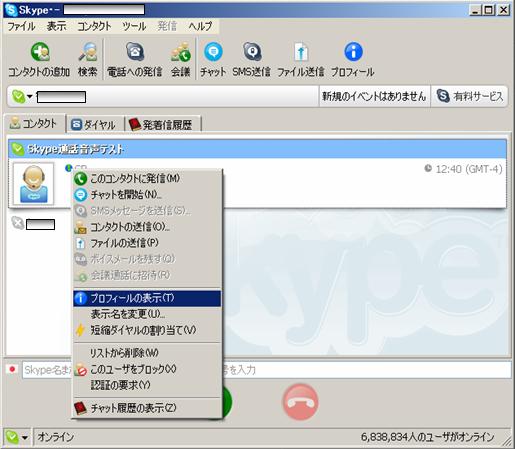 プロフィールは、コンタクトリストから右クリックして「プロフィールの表示」で見ることが可能です。