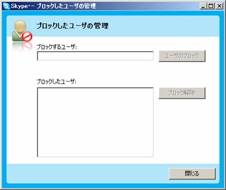 すると、下図のウィンドウが開きますので、このウィンドウでブロックするユーザやブロックの解除の管理が行えます。
