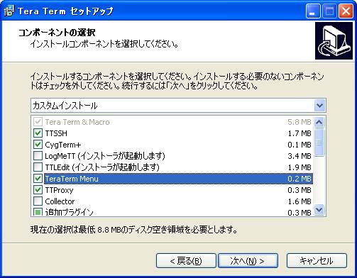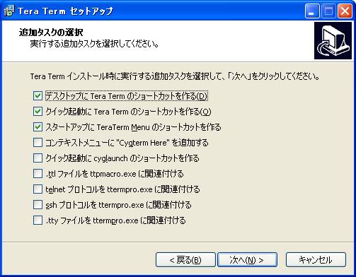 「Tera Term Menu」にチェックを入れて、「次へ」をクリックします。